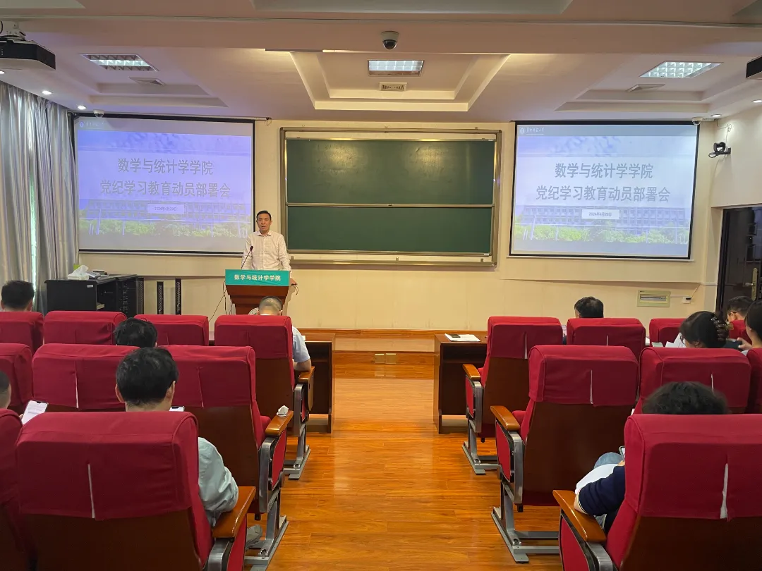 (通讯员 费蝶)4月29日上午,数统学院在6号楼M323会议室召开党纪学习教育动员部署会。院党委委员、党政领导班子成员参会,会议由院党委书记刘成竹主持。