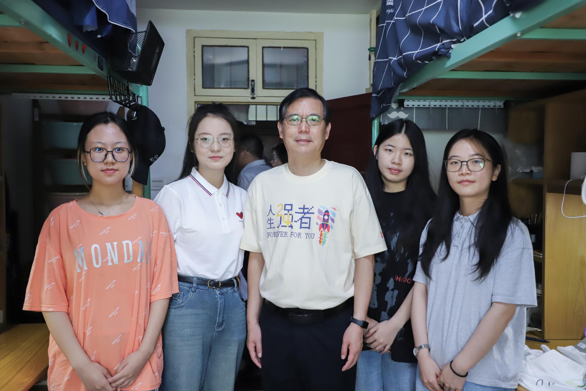 在东区1栋427和428寝室,陈迪明详细询问了毕业生们的就业情况、未来规划以及离校前的生活安排。对找到心仪工作的同学,陈迪明给予了热烈的祝贺,并鼓励她们继续努力,不断提高自己的专业技能;对升学深造的同学,陈迪明鼓励她们继续保持学习的热情和探索的精神,在更高层次追求学术上的突破和进步。陈迪明对毕业生的未来发展表达了美好祝愿,希望大家珍惜在校的最后时光,与同学们多交流、多沟通,共同度过这段难忘的时光,毕业后也要“常回母校看看”。