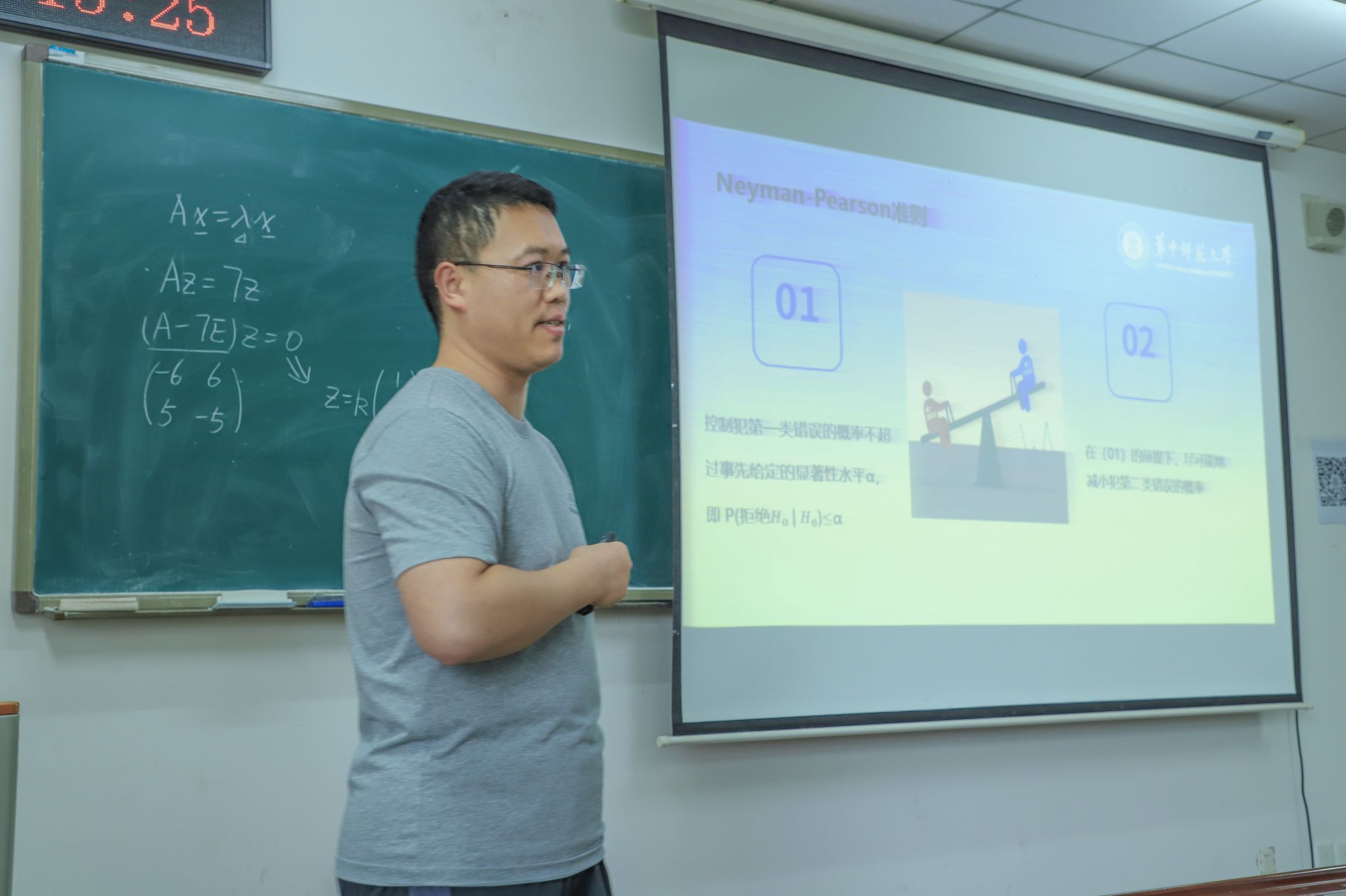 第一组参赛教师凭借多元策略与扎实功底合理安排课程节奏,以清晰的数学逻辑、精妙的教学设计将实变函数定理、函数项级数等抽象概念进行细致讲解,通过多样的生活化案例和趣味性情景启发学生深度思考,致力构建互动课堂。在授课过程中,选手们注重数学推导的严谨性、学术性,用灵活、恰当的教学方法将专业知识生动化、形象化。
