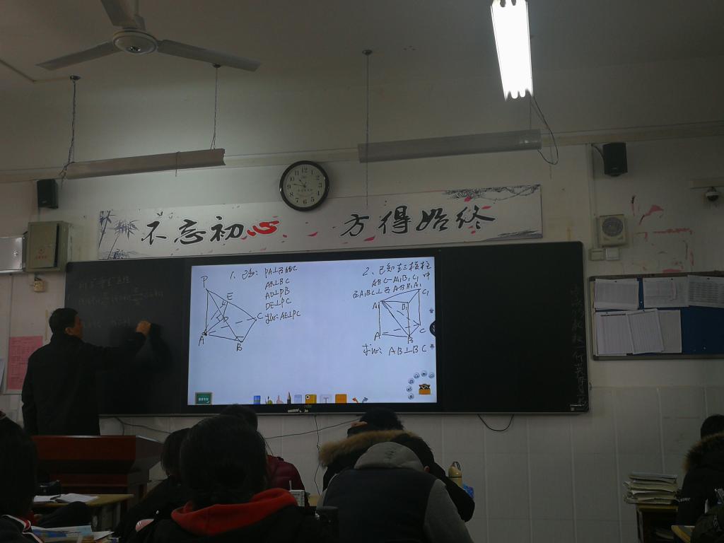 在上课之前,孔老师口述了两道经典例题,让同学们思考,并在纸上写出严谨证明。约十五分钟后,孔老师针对具体情况做了一个整体评价,并对审题和思路做了提点。孔老师强调在空间立体几何的证明中,解题步骤、数学符号的使用要再三斟酌,解题过程要从基本的定义和定理出发,有理有据地书写。孔老师指出,这两道题目具有很强的典型性,它们充分体现了“线线垂直”、“线面垂直”和“面面垂直”三者间灵活的相互转化,是课本定理的延伸,同学们可以牢记于心,并在今后的解题中作为结论直接运用,以提高解题速度和精度。