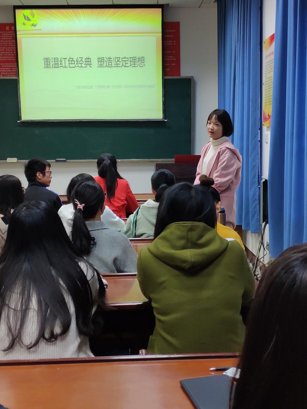 11月9日,我院信息计算党支部、17级研究生第一党支部及17级本科生党支部在六号楼M116教室开展了支部共建活动。本次活动的主题为“重温红色经典,塑造坚定理想”。参加此次活动的有信息计算党支部党员、2017级研究生第一党支部及2017级本科生党支部成员。活动由2017级本科生党支部蒋慧敏主持。