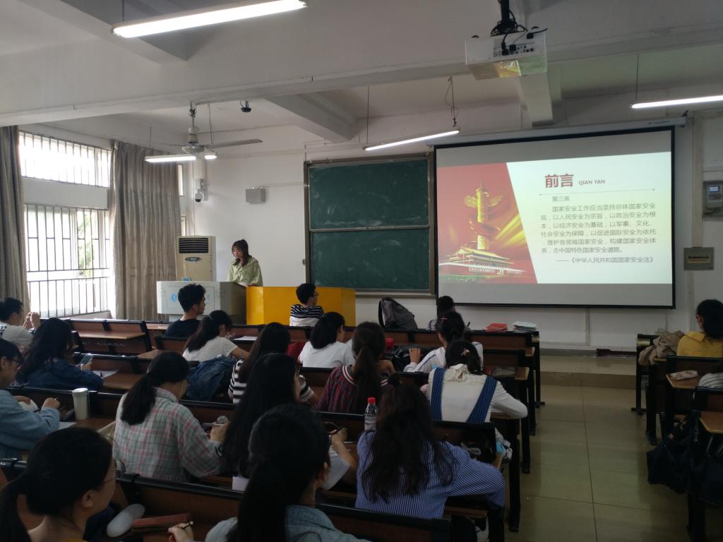 2019年4月19日,我院2016级本科生党支部在六号楼6201开展了四月支部主题党日活动,本次活动的主题是:1、学习习近平总书记关于总体国家安全观的系列重要论述;2、学习习近平总书记在学校思想政治理论课教师座谈会上的重要讲话精神。