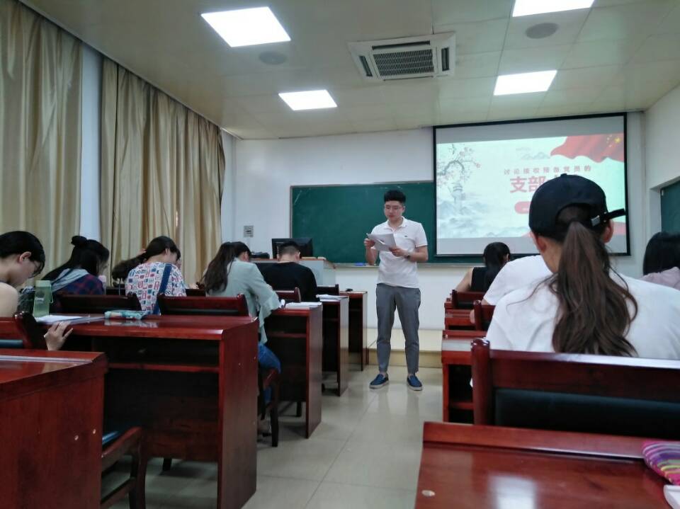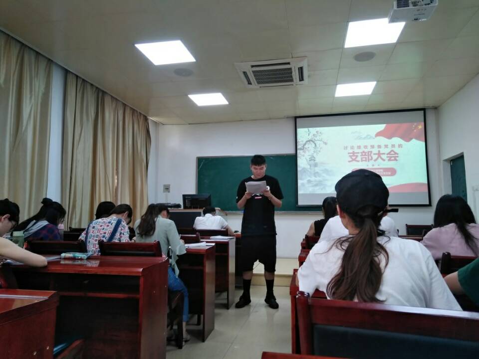 2019年6月5日,我院2017级、2018级本科生党支部在六号楼二楼报告厅召开支部大会。本次大会的议题是讨论接收宋夏等14名发展对象为预备党员的问题,参加本次大会的有支部4名正式党员以及15名发展对象,会议由党支部书记王奥林同志主持召开。
