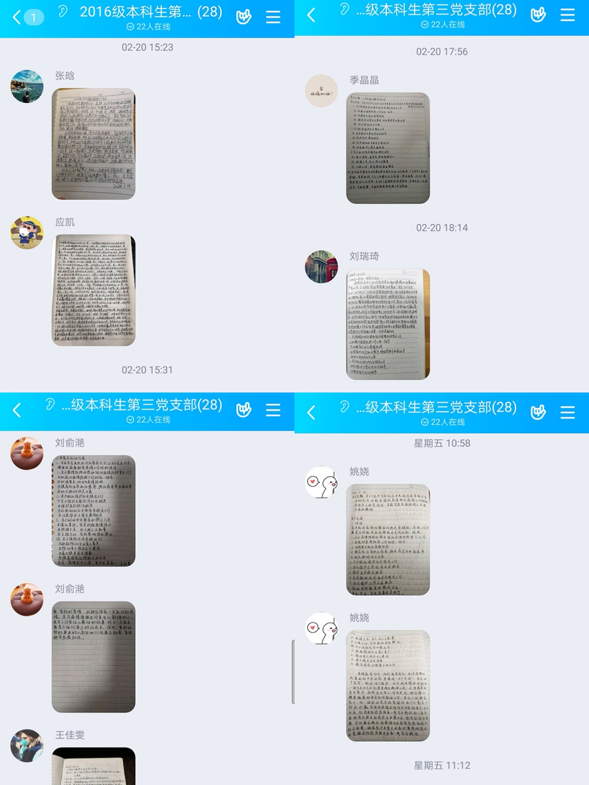 随后,支部党员们利用时间将学习心得记录在学习记录本上,拍照上传群里,展开交流分享。各位党员积极踊跃发言,从不同地区、不同层面、不同角度出发,各抒己见。大家认为在这个特殊时期我们都应该做到不造谣、不信谣、不传谣,利用自己的知识和鉴别能力,主动辟谣,宣传正确正规的新闻和及时准确的权威消息,帮助身边人擦亮眼睛,充分发挥党员的先锋模范作用,将小我融入大我,贡献自己的力量。