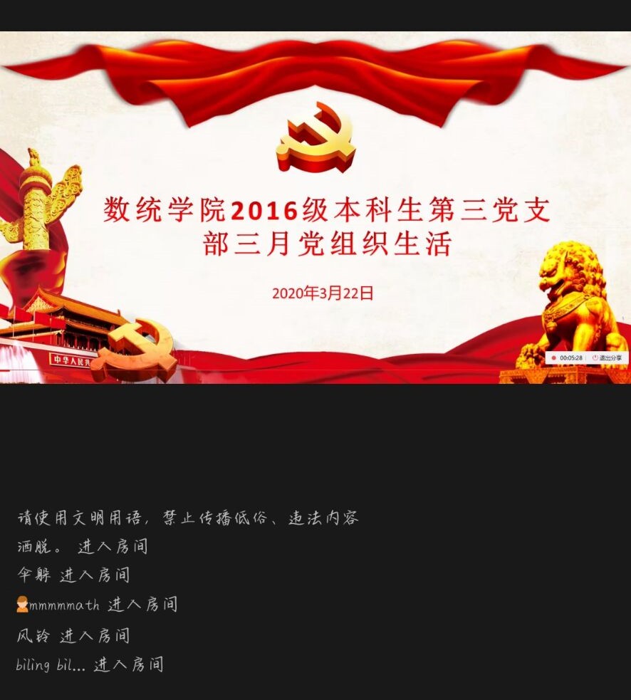 本次主题党日活动分为两部分,第一部分为学习习近平总书记在湖北省考察新冠肺炎疫情防控工作时的重要讲话精神,第二部分为学习习近平给北京大学援鄂医疗队全体“90后”党员的回信,同时全体党员根据近期的学习、生活情况进行在线交流。作为党组织的一员,我们要积极响应习总书记的要求,在疫情防控中做出表率作用,在自己的能力范围内捐款捐物,有条件的情况下做社区志愿者,为广大的人民群众服务,不去人多的地方,做到对自己负责,对他人负责,要向身边人普及防疫的知识,并且传递正能量,不信谣,不传谣,引导广大群众正确面对疫情。