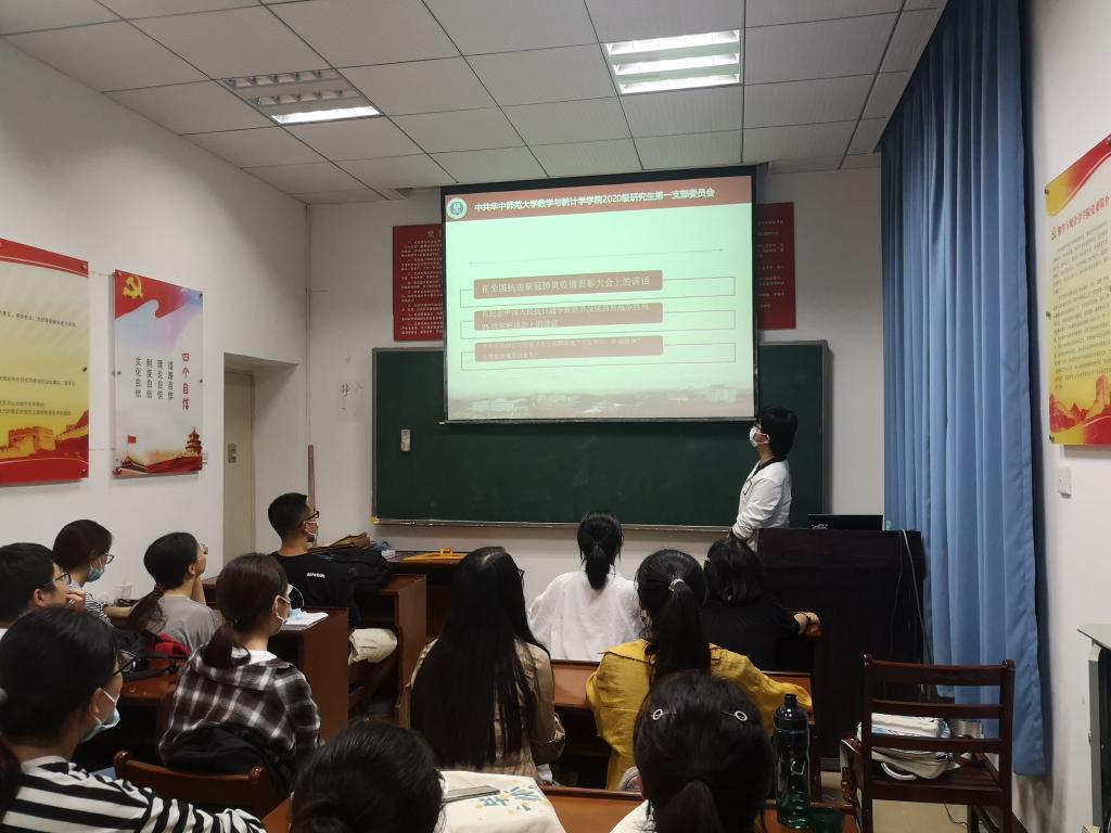 9月28日晚上6点30分,数学与统计学学院2020级研究生第一党支部在六号楼m116教室召开了主题党日活动。本次活动后主题包含三个方面的内容,分别是:在全国抗击新冠肺炎疫情表彰大会上的讲话、纪念中国人民抗日战争暨世界反法西斯战争胜利75周年座谈会上的讲话、中共中央办公厅印发《关于巩固深化“不忘初心,牢记使命”主题教育成果的意见》。本次活动由党支部书记刘浩然主持。