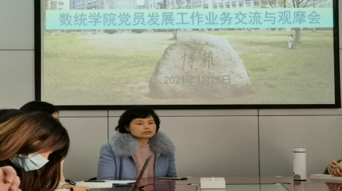 为进一步加强和规范学院党建工作,提升发展党员质量,数统学院党委于3月25日上午在学院四楼会议室组织召开了党员发展工作业务交流与观摩会。全体学生党支部书记、支委和业务骨干参加了本次交流研讨。会议由党委办公室陈燕老师主持。