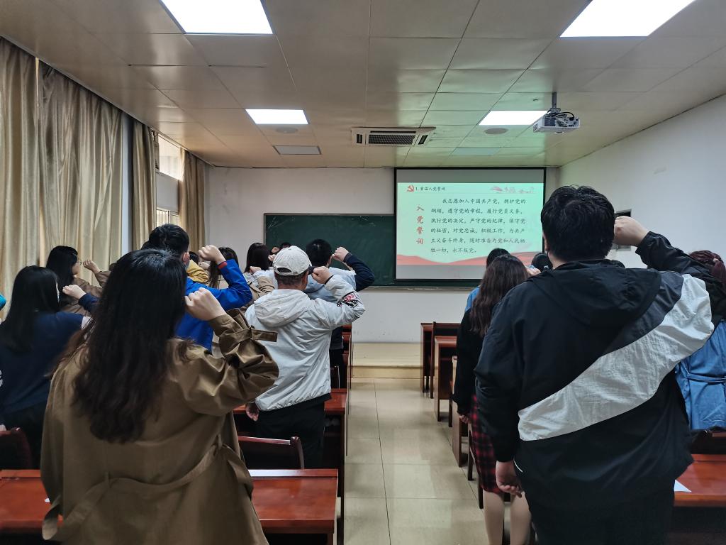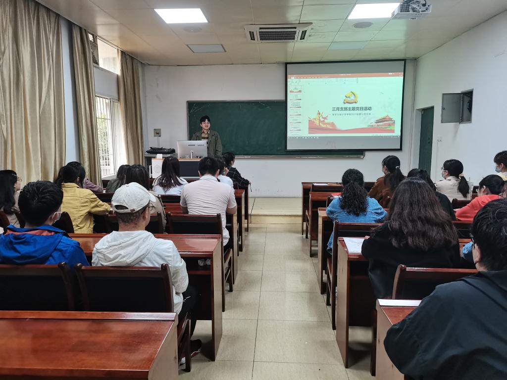 活动伊始,宋夏同志带领大家重温入党誓词,现场气氛变得庄重起来。接着,宋夏同志诵读《党章》第七章的内容,带领党支部成员学习党的纪律。随后,由第四小组的三位同志做学习相关文件的汇报分享,张文娟同志带领支部成员深入学习贯彻习近平总书记在党史学习教育动员大会上的重要讲话精神,指出:全党同志要做到学史明理、学史增信、学史崇德、学史力行,学党史、悟思想、办实事、开新局,以昂扬姿态奋力开启全面建设社会主义现代化建设新征程,以优异成绩迎接党的一百周年;朱银赫同志针对学习赵凌云书记在学校党史学习教育动员大会的讲话做出汇报,并借用赵凌云书记的话来告诫学生党员,要牢记青年责任,学好理论知识,努力为党和人民的发展奉献自己的力量;秦永鹏同志带领支部成员深入学习2021年全国两会精神和习近平总书记在全国两会期间重要讲话精神,并就两会中的热点向在场支部成员做出提问,在问与答中,本次党日活动中大家的学习效率显著提升。
