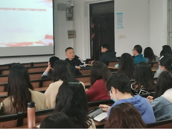 最后,由支部书记对本次活动进行总结。2017级本科生第三党支部书记胡一心谈到:“本次共建活动中,师生一起忆党史,学党史,从党史中领悟党的精神。在教工党员的影响下,学生党员意识到做人要有信仰,做事要认真对待,而且要脚踏实地干实事。此外,教工党员针对学习、就业等问题做出的回答,也都令我们受益匪浅。”