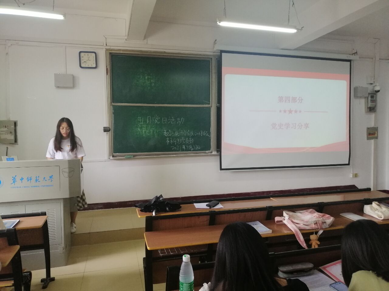 随后,郑芷颖和穆元媛就自己近期的党史学习分享了一些自己收获和感受。郑芷颖在简单介绍《论中国共产党历史》这本书后,结合自身经历与体验,阐明中国共产党致力于实现国家现代化和中华民族的伟大复兴的意志始终没有动摇;穆元媛分享的书本是《习近平新时代中国特色社会主义思想学习问答》,认为当代青年要紧密结合党史学习教育,把学党史和悟思想贯通起来,学好用好《问答》,把学习领会习近平新时代中国特色社会主义思想进一步引向深入,切实巩劳全体人民团结奋斗的共同思想基础,更好地肩负起社会主义建设者和接班人的历史使命。