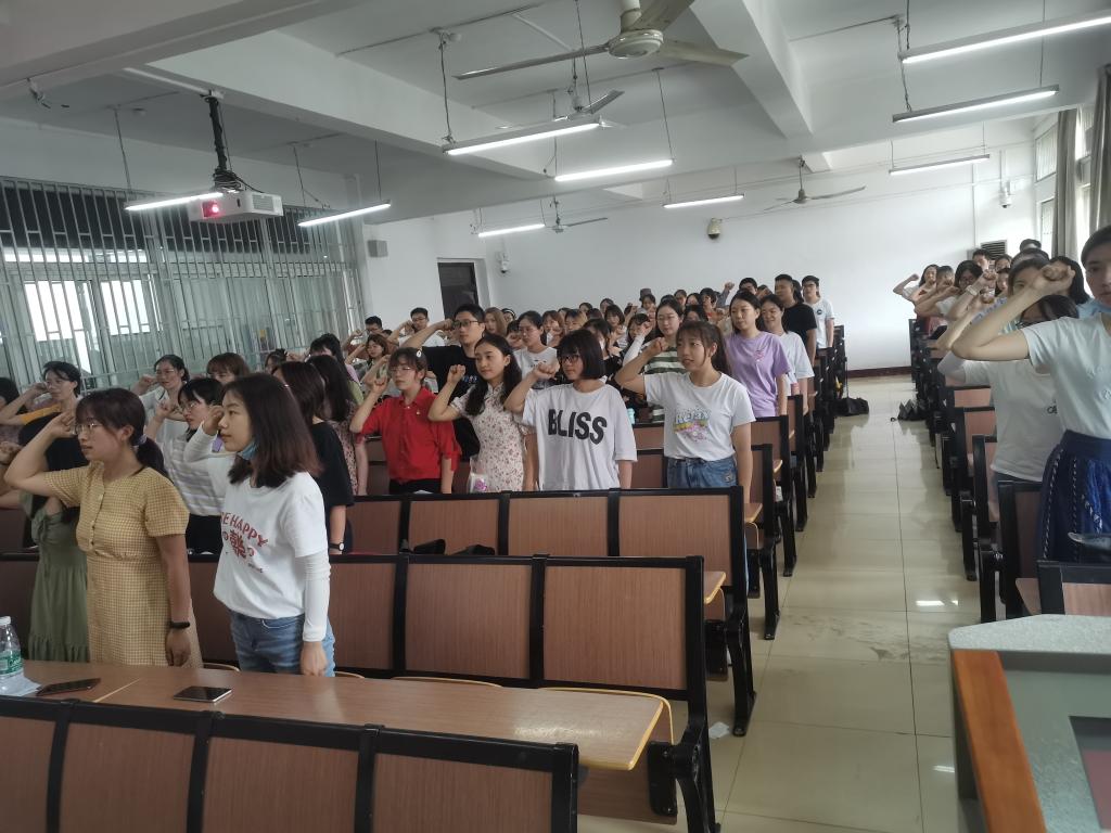 6月2日下午,数学与统计学学院2018级本科生党支部于6号楼6301教室召开了第六批发展党员大会,本次会议的主题是:讨论关于接收李佩瑶等18名同志为预备党员的问题。出席此次会议的有党支部书记谢定一,支部宣传委员申墁烨,支部组织委员何婷婷以及全体预备党员,此次会议由何婷婷主持。