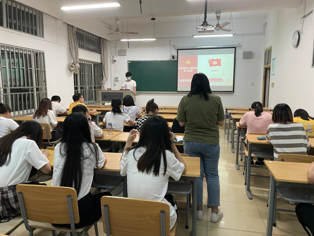 紧接着,由党支部第七小组的成员郑灵同志带领我们学习这次党日活动的内容。在学习贯彻第二十七次全国高校党的建设工作会议精神过程中,他分享到教育是国家之大计、党之大计,是民族振兴、社会进步的重要基石,要牢记为党育才使命。人民教育为人民,要坚持紧紧依靠人民、不断造福人民,办好人民满意教育,让全体中国人民享受到更公平的教育。并且向我们列举了广东省委组织部、四川省委宣传部、安徽省委教工委以及中国人民大学、西安交通大学等5所高校就近年来高校党的建设和思想政治工作成效与经验进行交流发言。我们作为民族复兴的时代新人,要有鉴定的理想信念;要有真本领;要有担当精神。在学习贯彻习近平总书记给全国高校黄大年式教师团队代表重要回信精神过程中,他分享到,为师之道,首在师德。总书记强调,好老师要做到学为人师、行为世范。我们要以黄大年同志为榜样,需要学习和弘扬心有大我、至诚报国,把爱国之情、报国之志融入祖国改革发展的伟大事业之中、融入人民创造历史的伟大奋斗之中的高尚品格。其次,小组交流分享感悟,在交流中,于文浩同志分享到:通过此次学习,我们可以清楚地认识到党对我国高校发展的重视。于个人而言,要深刻领会、全面把握全国高校党的建设工作会议精神重点,把思想和行动统一起来并运用到实际工作中去,要知晓国家对青年一代的殷切期盼与本身的责任,要努力做好社会主义建设者和接班人。张红飞同志说到:“通过学习贯彻习近平总书记给全国高校黄大年式教师团队代表的重要回信,作为将来很大可能成为教师的我们应当同全国广大教师一道,立德修身,清心治学,开拓创新,真正把为学、为事、为人统一起来,当好学生成长的引路人,为培养德智体美劳全面发展的社会主义建设者和接班人、全面建设社会主义现代化国家不断作出新贡献。