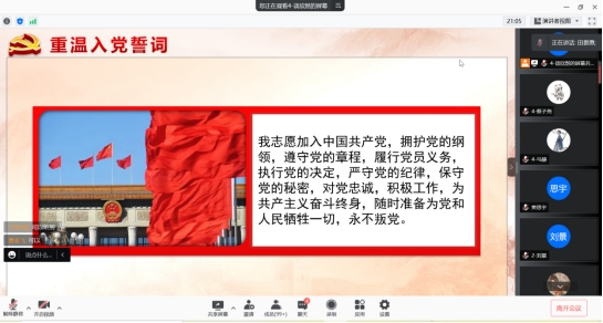 10月31日下午四时,数学与统计学学院2018级本科生党支部于腾讯会议开展主题为“学系列讲话,做合格党员”的党日活动,此次党日活动开设重温入党誓词、学习党章、主题学习分享、批评与自我批评以及党费缴纳五个环节,会议由谈欣然同志主持。