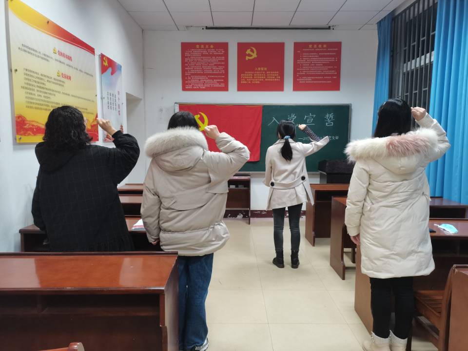 仪式伊始,全体起立,奏《国际歌》。紧接着,书记李祥凤同志宣读了参加入党宣誓的预备党员名单。随后,在李祥凤的带领下,全体起立,预备党员面向党旗,举右手(握拳过肩),进行了庄严宣誓,“我志愿加入中国共产党,拥护党的纲领,……,为共产主义奋斗终身,随时为党和人民牺牲一切……”。一句句铿锵有力的誓言回荡在党员活动室,更回荡在各位新党员的心中。