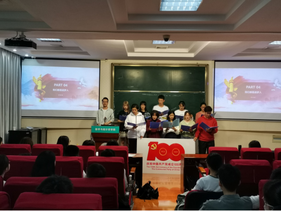 第六小组围绕全面了解和准确把握习近平总书记关于教育的重要论述和如何正确认识党史、新中国史、改革开放史、社会主义发展史,并牢固树立“胸怀报国志,永远跟党走”的坚定信念?第六小组给我们详细介绍了习近平总书记关于教育的重要论述和党史、新中国史、改革开放史、社会主义发展史的发展历程,并结合实际谈了谈作为师范生的我们应该如何实现立德树人的教育目标,随后该小组为庆祝中国共产党成立一百周年,给我们带来了诗朗诵《党旗飘飘》和合唱《我们都是追梦人》。
