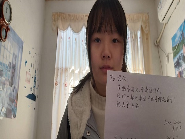 “太阳每天都是新的,你是否每天都在努力。”正是这份乐观积极的心态,让苏阳苗在抗击疫情中不退缩,不逃避,以最美好的心态去为疫情胜利而不断努力着。所以,无论身处何方,那份对武汉对国家的爱是不会停止的。愿武汉早日恢复往日生机,没有一个冬天不可逾越,没有一个春天不会到来。也静待花开之时,共赴武汉!