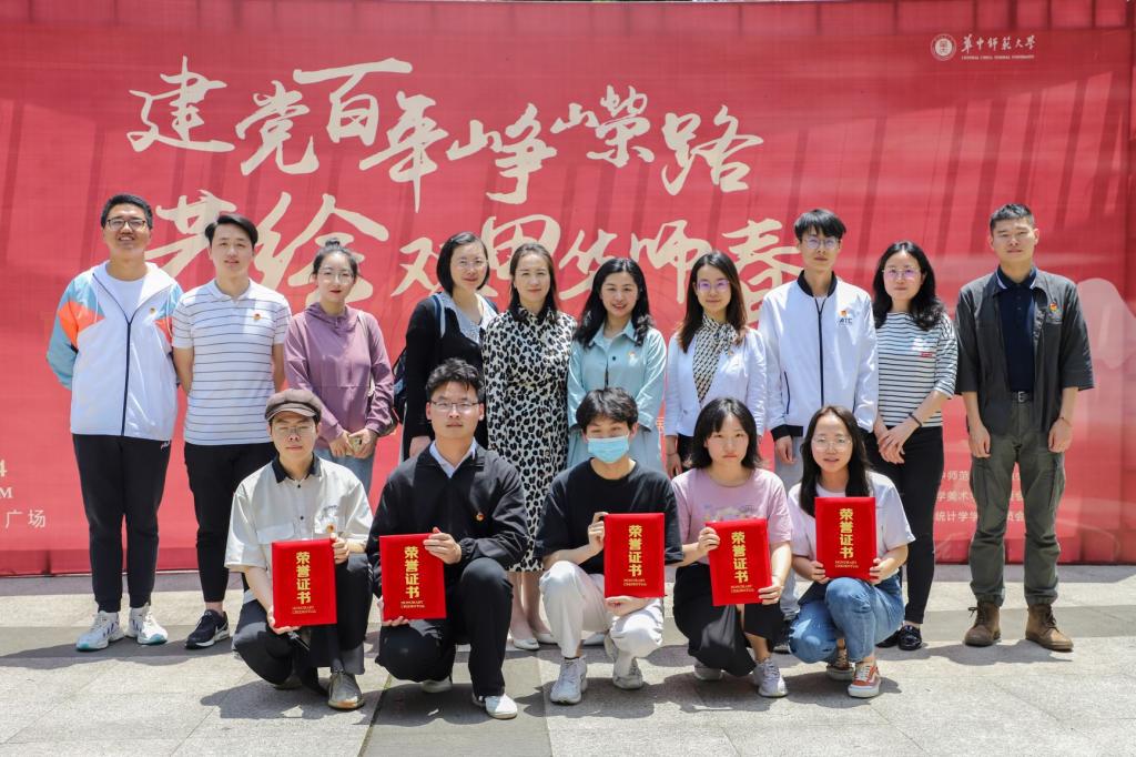 精彩的表演过后,进行颁奖环节。胡余映、田俊为非专业组一等奖获奖学生颁奖,麻旎为专业组一等奖获奖学生颁奖并合影留念。