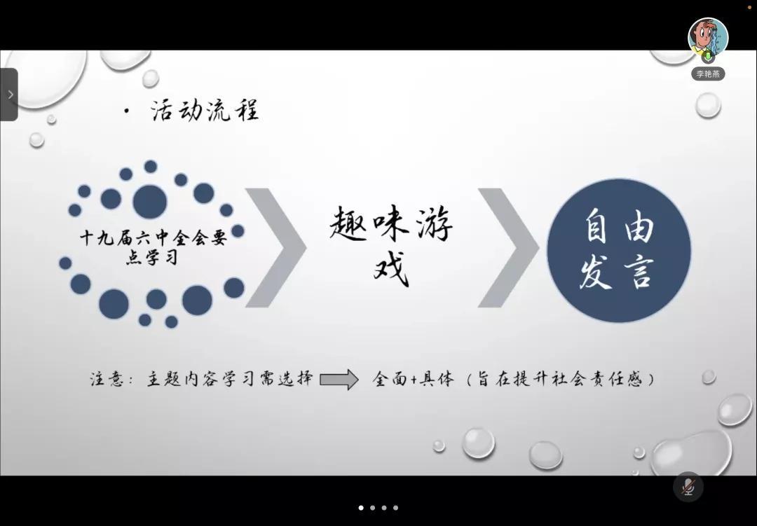 会议伊始,孙澜介绍了本次会议的流程,并邀请2005和2010团支部的团支书分别进行十二月优秀团日活动的经验分享。2005团支部团支书张洪涵介绍了团日活动的策划思路和活动流程,他提到,可以通过准备水果零食、策划趣味活动等方法来吸引各位团员的注意力,提高大家的参与度。2010团支部团支书李艳燕分享了团日活动中的趣味游戏和自由发言环节,她说道:“自由发言环节可以增加团员彼此间的熟悉度,拉近同学关系,融洽相处氛围。”