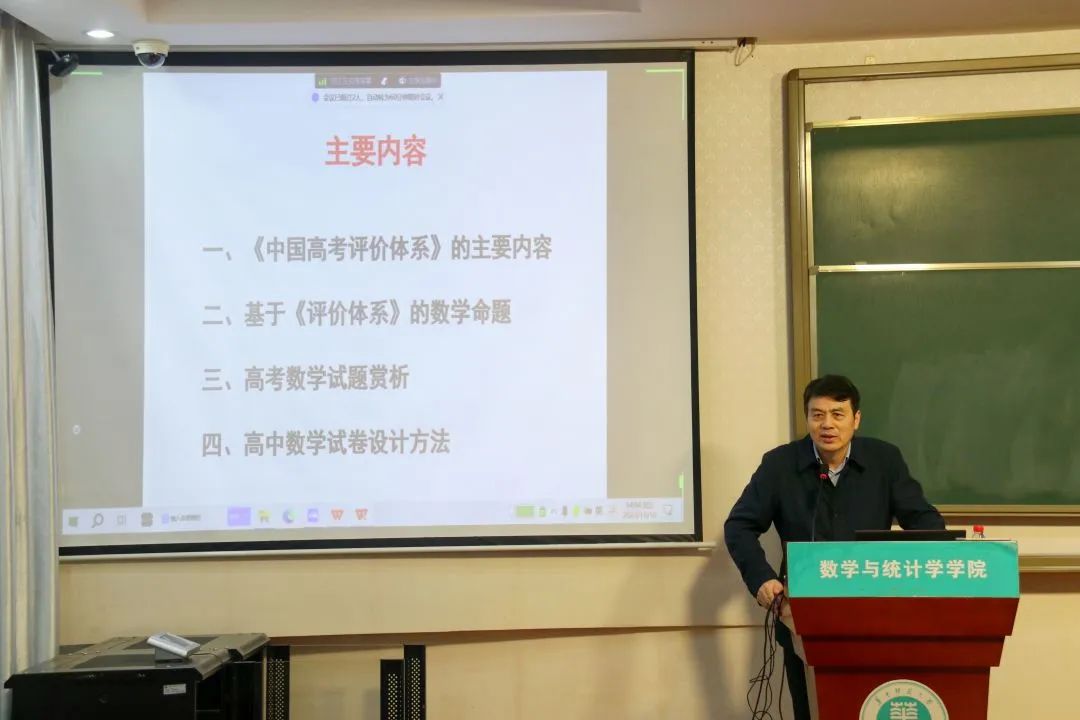 (通讯员 祁鑫烨)为进一步帮助师范生提高试题研究与命题的专业能力,促进师范生技能的提升,11月10日下午,数学与统计学学院(以下简称“数统学院”)“探知求实 以卷怀生”试卷设计经验分享会在六号楼6401报告厅顺利举行。此次专题分享会特邀湖北省数学特级教师孔凡祥担任主讲人,数统学院党委副书记杨可军、“数苑”学习发展中心指导老师蔡子尧、本科生辅导员申墁烨出席活动现场。活动由蔡子尧主持。