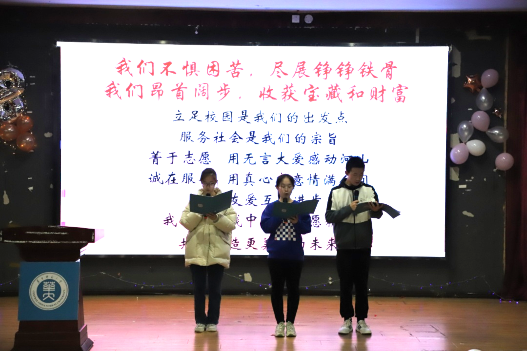 立足校园,服务社会。朗诵《菁心筑梦,诚启未来》的一字一句都印证了成员们的默默付出与团结奋进。