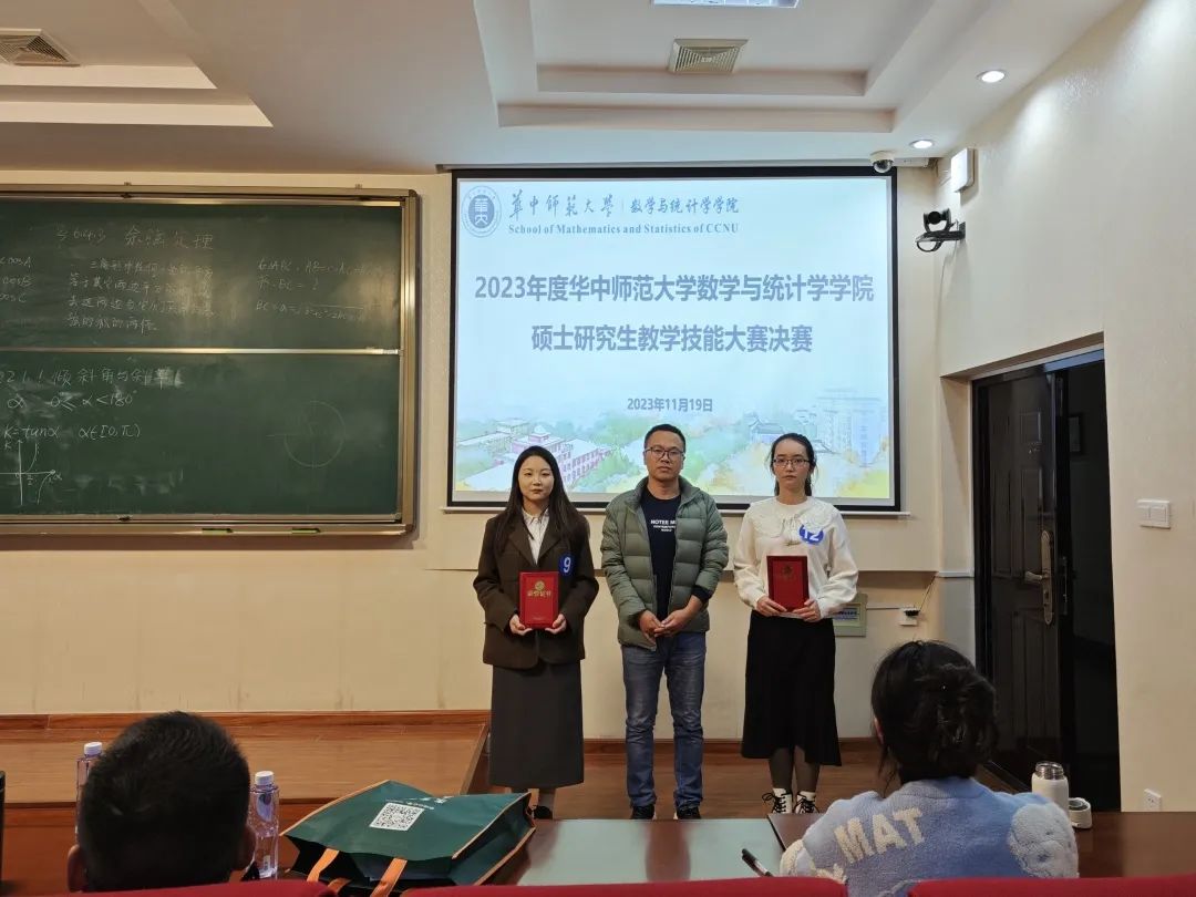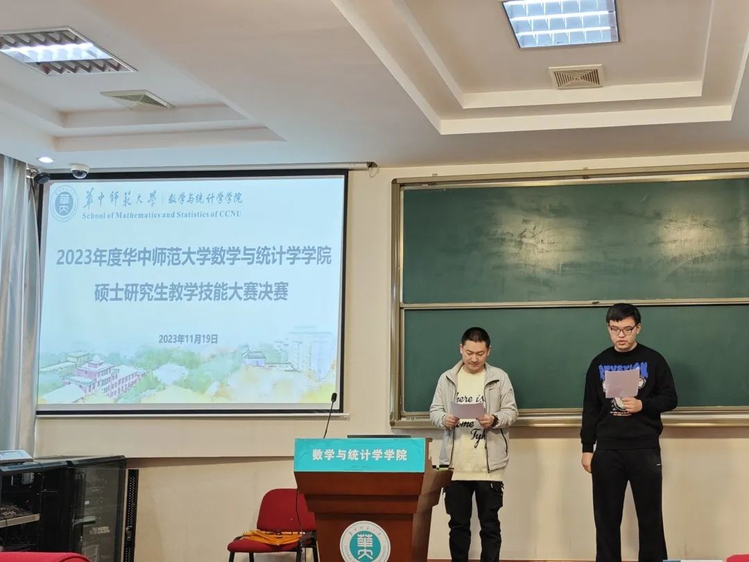 (通讯员 张俊 瞿莉)为进一步深化课堂教学改革,提高全日制教育硕士的教学水平、实践能力和创新意识。11月19日下午,2023年度华中师范大学数学与统计学学院研究生教学技能大赛在6401顺利举行。本次比赛由数学与统计学学院研究生会主办,充分调动了同学们的教学主动性和积极性,发挥了教学比赛在提高教师综合素质中的带动作用。此次比赛有幸邀请到华中师范大学在读博士常宁、潘小峰、罗春花三位老师担任评委。学院研会成员谢玉斌、魏泽旋担任主持。