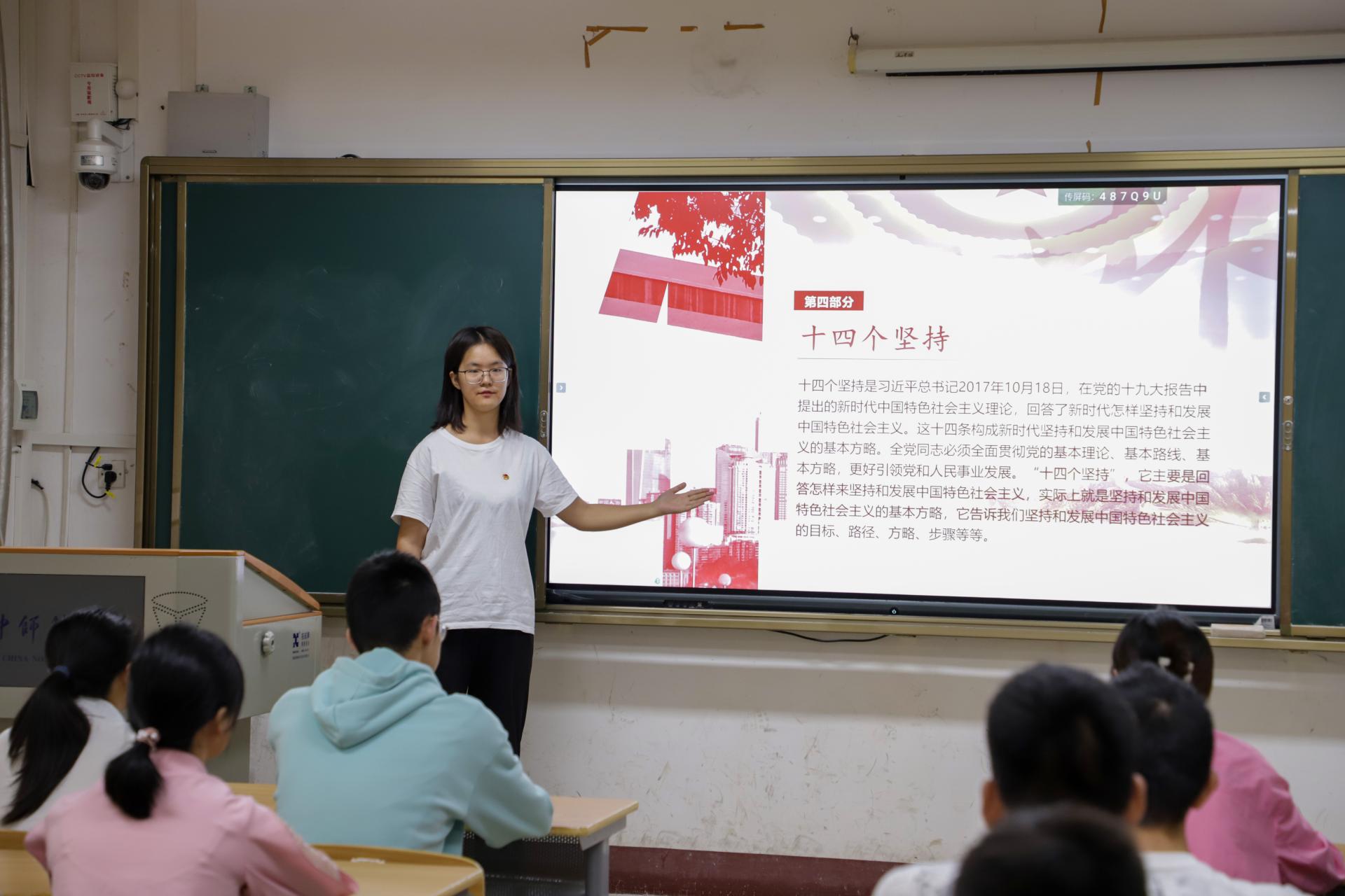 此次主题团日邀请学校青年马克思主义者培养工程“恽代英菁英学校”第九期学员范一鸣进行领学。范一鸣重点围绕“两个结合”“六个必须坚持”“十个明确”等方面,带领青年团员不断增进对党的创新理论的政治认同、思想认同、理论认同、情感认同。
