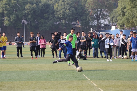下半场物院男足已显疲态,传球方面出现多次失误,而数院队员防守稳健,积极跑位,一直掌控比赛的主动权。在双方僵持不下时,物院队员突然猛攻,攻破防守,成功进球,将比分拉至2:2。由于双方比分相平,比赛进入点球环节。在防守队员麦赛迪和其余数院球员精准射门的配合下,最终数院队员以4:3胜过物院,成为这场淘汰赛的优胜者。
