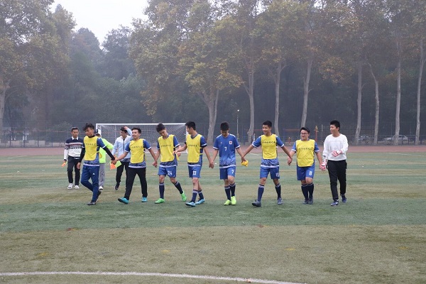 (通讯员 江余寒)11月24日中午,数学与统计学学院(以下简称数院)与物理科学与技术学院(以下简称物院)两支足球队在佑铭体育场南区进行了新生杯男子足球1/4决赛,展开了入围半决赛的激烈角逐。在天气恶劣的比赛场上,伴随着大风,数院男足在灰蒙蒙的视野里以3:2的比分赢得比赛,不负众望挺进半决赛,展现了数院“人生强者”的风采。