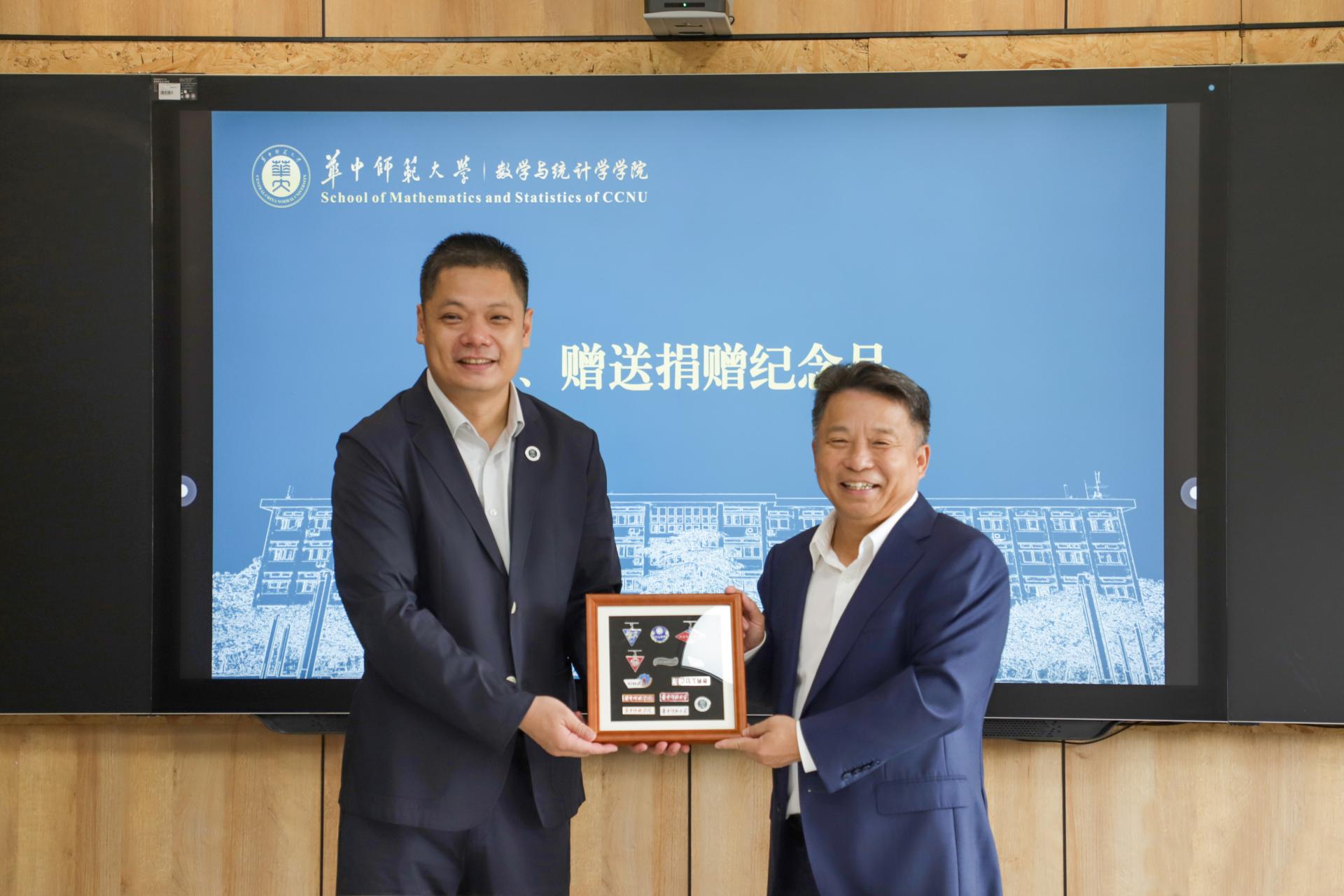 捐赠仪式上,数学系83级校友詹伟哉代表“德沃”奖学金捐资校友向学院捐赠10万元,用于支持学院人才培养。华中师范大学教育发展基金会秘书长郭庆与詹伟哉签署捐赠协议并向詹伟哉赠送学校纪念品,数统学院副院长左国新接收捐赠支票,彭双阶代表学校为詹伟哉颁发捐赠证书、捐赠奖牌。数统学院党委书记刘成竹为詹伟哉赠送学院纪念品《桂子记忆》。