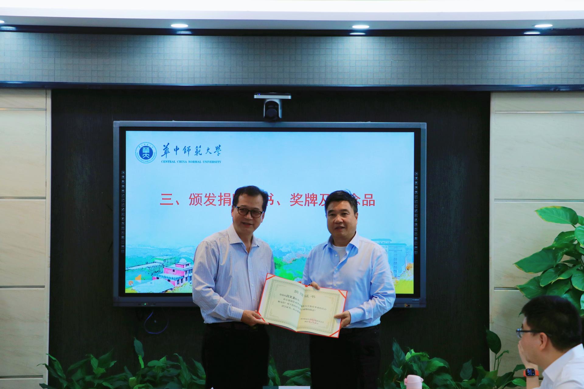 9月25日,“民本”青年教师成长基金捐赠仪式在华中师范大学行政楼三楼会议室举行。数学系79级校友、湖北民本集团董事长吕文龙,学校副校长彭南生以及学校相关单位负责人和数学系79级校友代表参加了此次捐赠仪式。仪式由华中师范大学教育发展基金会秘书长郭庆主持。