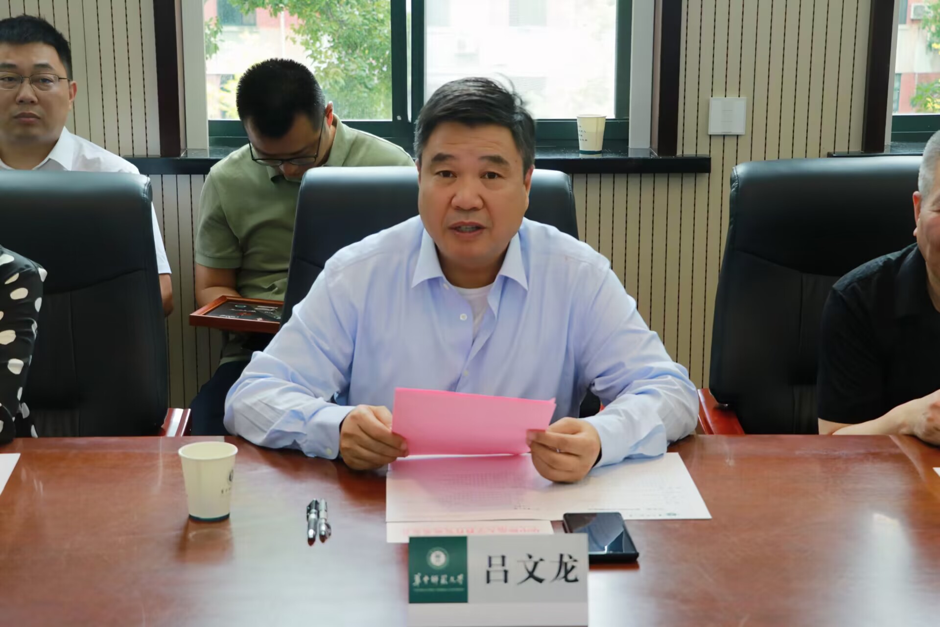 彭南生代表学校对吕文龙校友的慷慨出资表示衷心感谢,充分肯定吕文龙校友的善举。他表示,吕文龙多年来坚持绿色发展经营理念,他的社会情怀、教育担当和大爱精神值得全体华师人学习与借鉴。正值华师120周年校庆之际,吕文龙校友的善举对于学校发展具有重要意义。学校将充分使用善款、争取效能最大化,共同促进加强数学与统计学学院的建设发展。