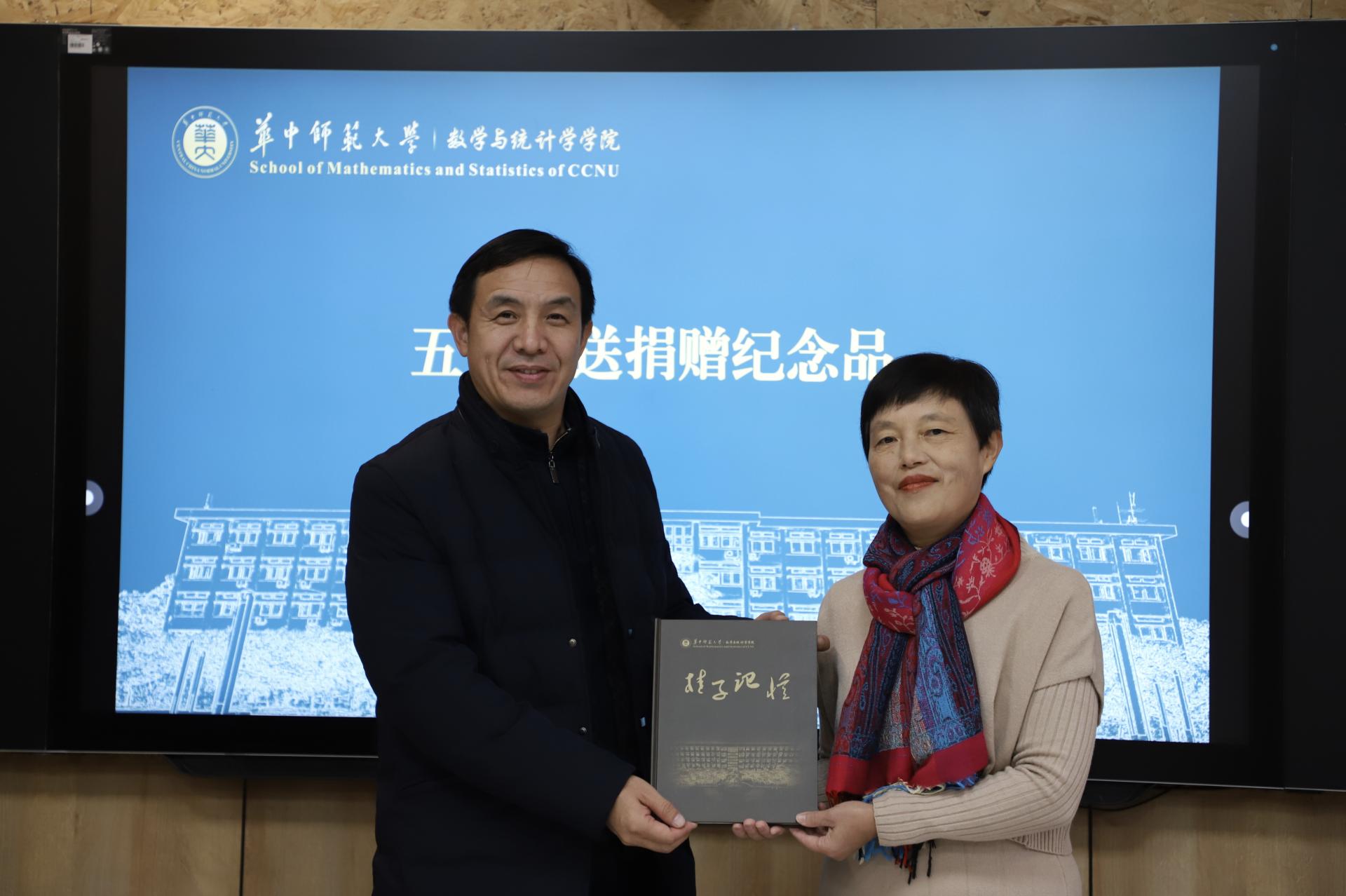 捐赠仪式上,数学系8304班校友向学院捐赠50万元,用于支持学院教育事业发展。华中师范大学教育发展基金会秘书长郭庆与数学系8304班校友代表、广州市85中学教师、广州市优秀教师唐庆华签署了捐赠协议,数统学院副院长左国新接收捐赠支票,刘继文代表学校为8304班校友代表唐庆华颁发捐赠证书、捐赠奖牌。数统学院党委书记刘成竹为8304班校友代表唐庆华赠送学院纪念品《桂子记忆》。