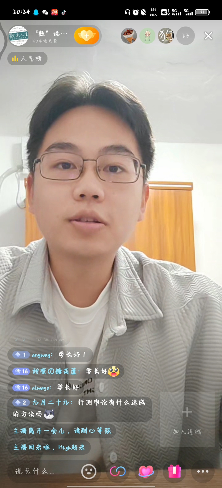(通讯员 安摇)为构建学院高质量就业指导服务体系,强化生涯教育,加强就业指导,增进学生对选调生的了解,拓宽毕业生就业新思路,11月4日,数学与统计学学院(以下简称:数统学院)第二十一期“数”说人生校友论坛于抖音直播间顺利举行。本期讲坛由数统学院2023届本科毕业生陆国龙进行分享,讲坛由2021级本科生辅导员武靖主持。
