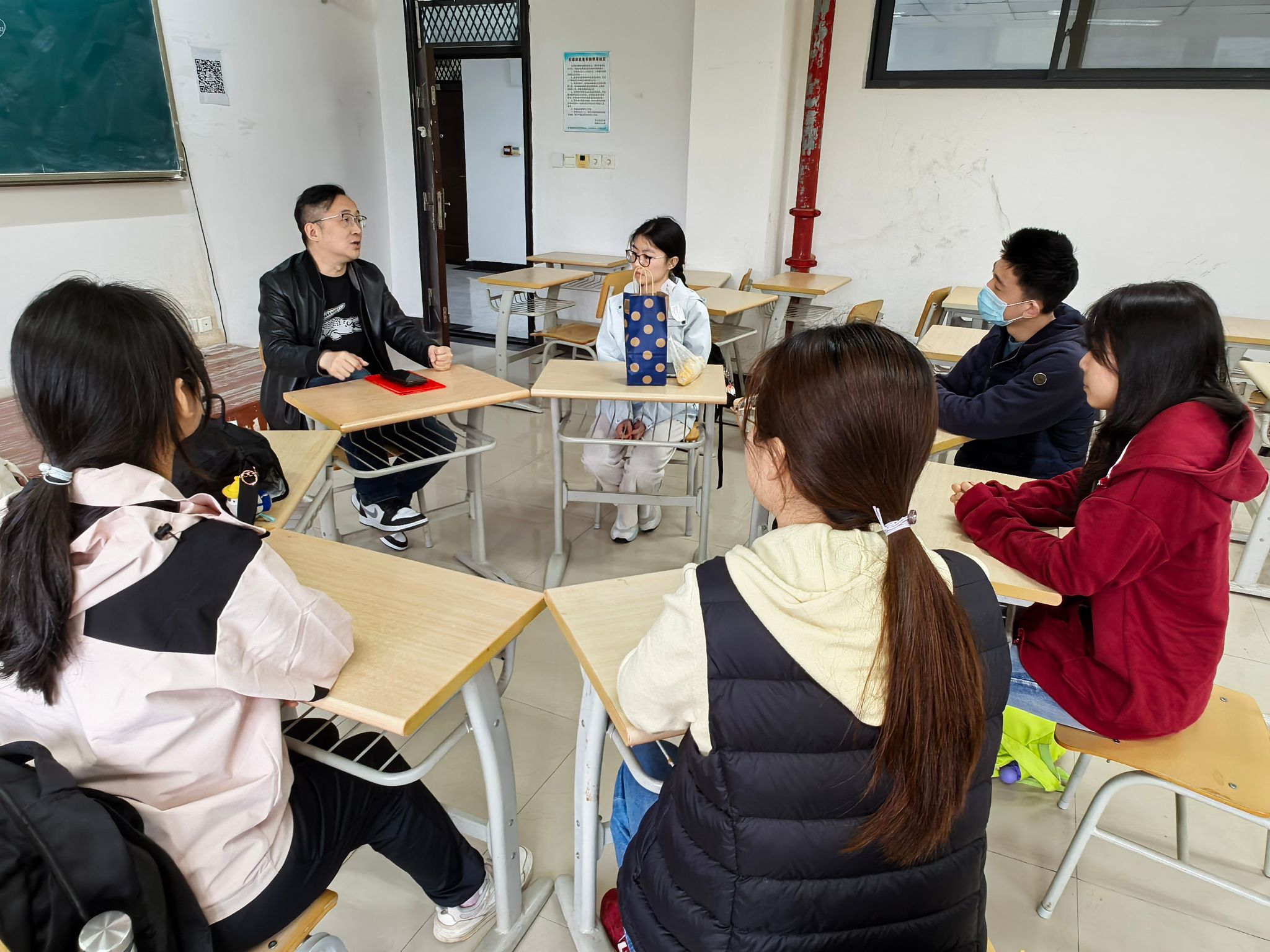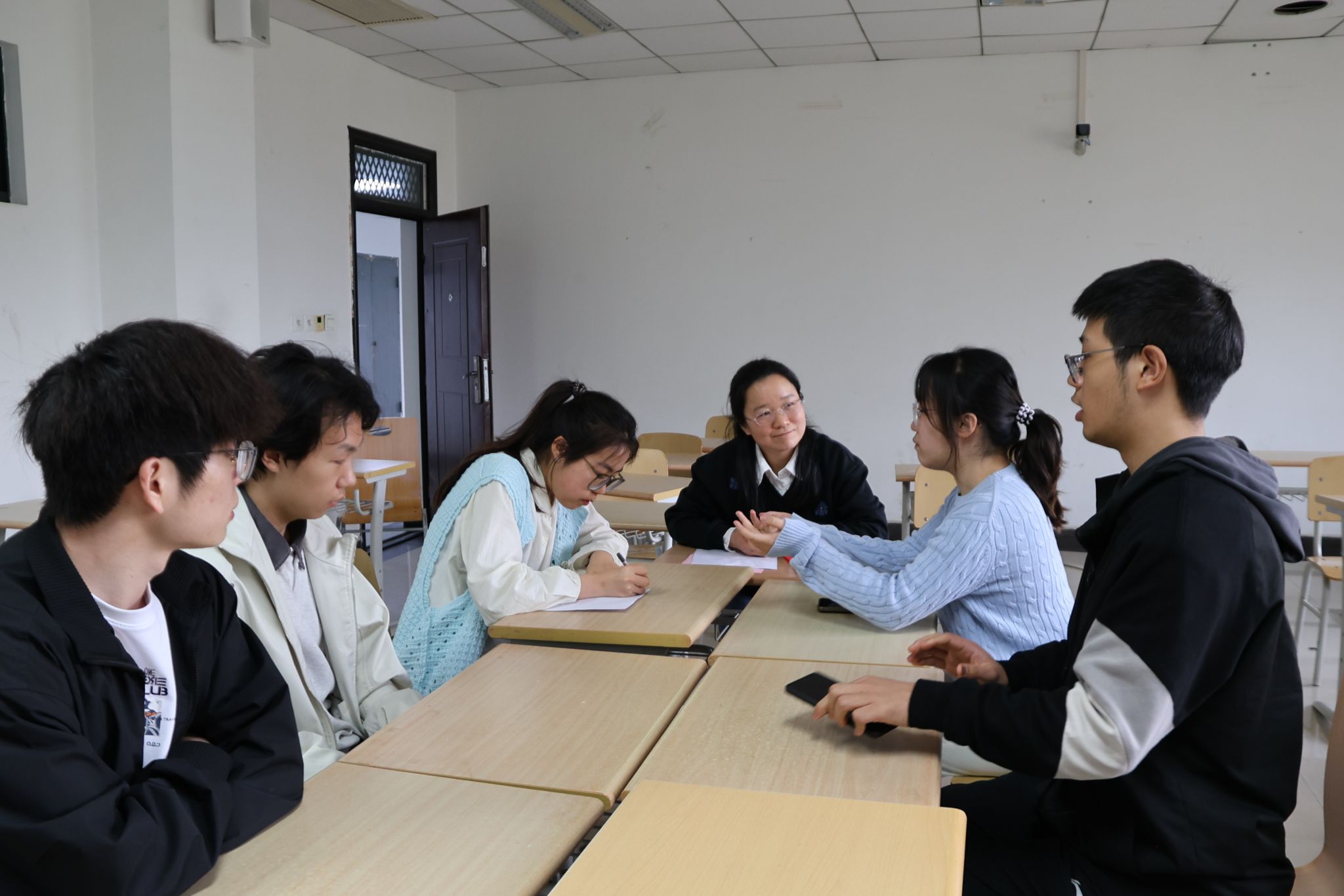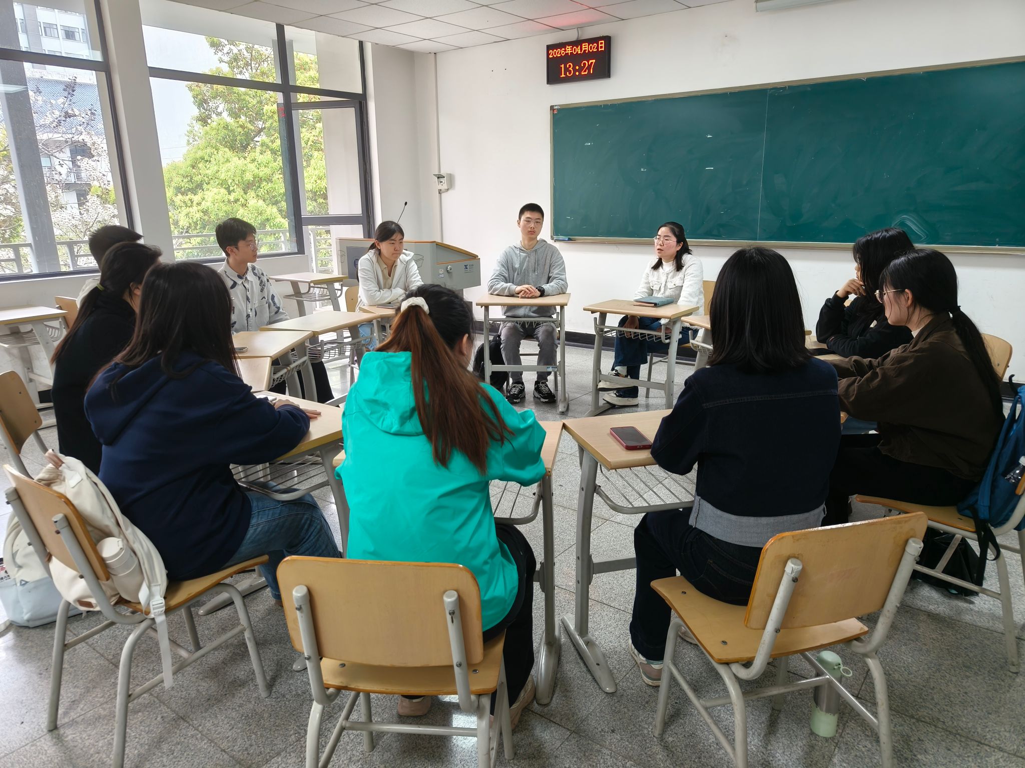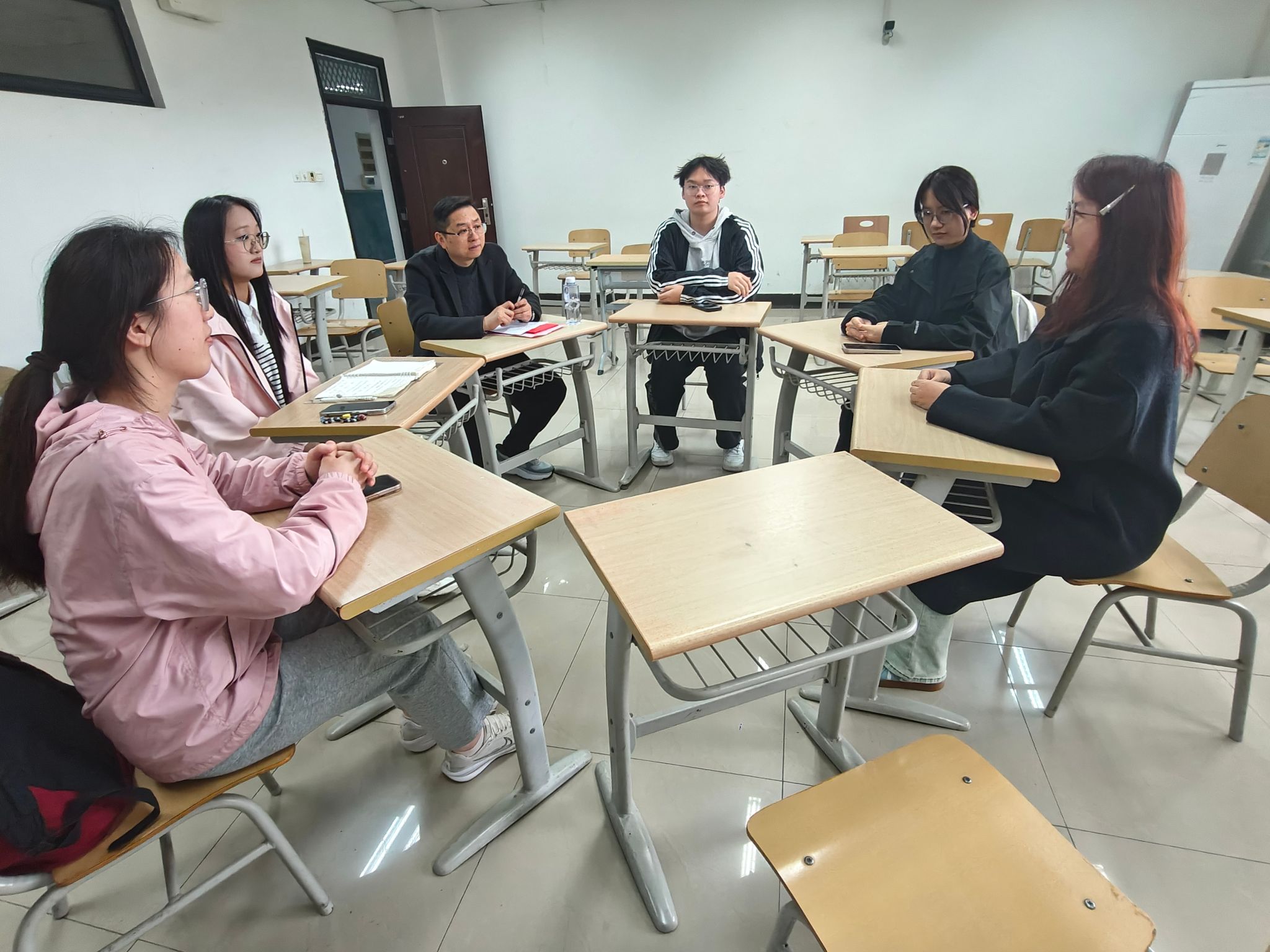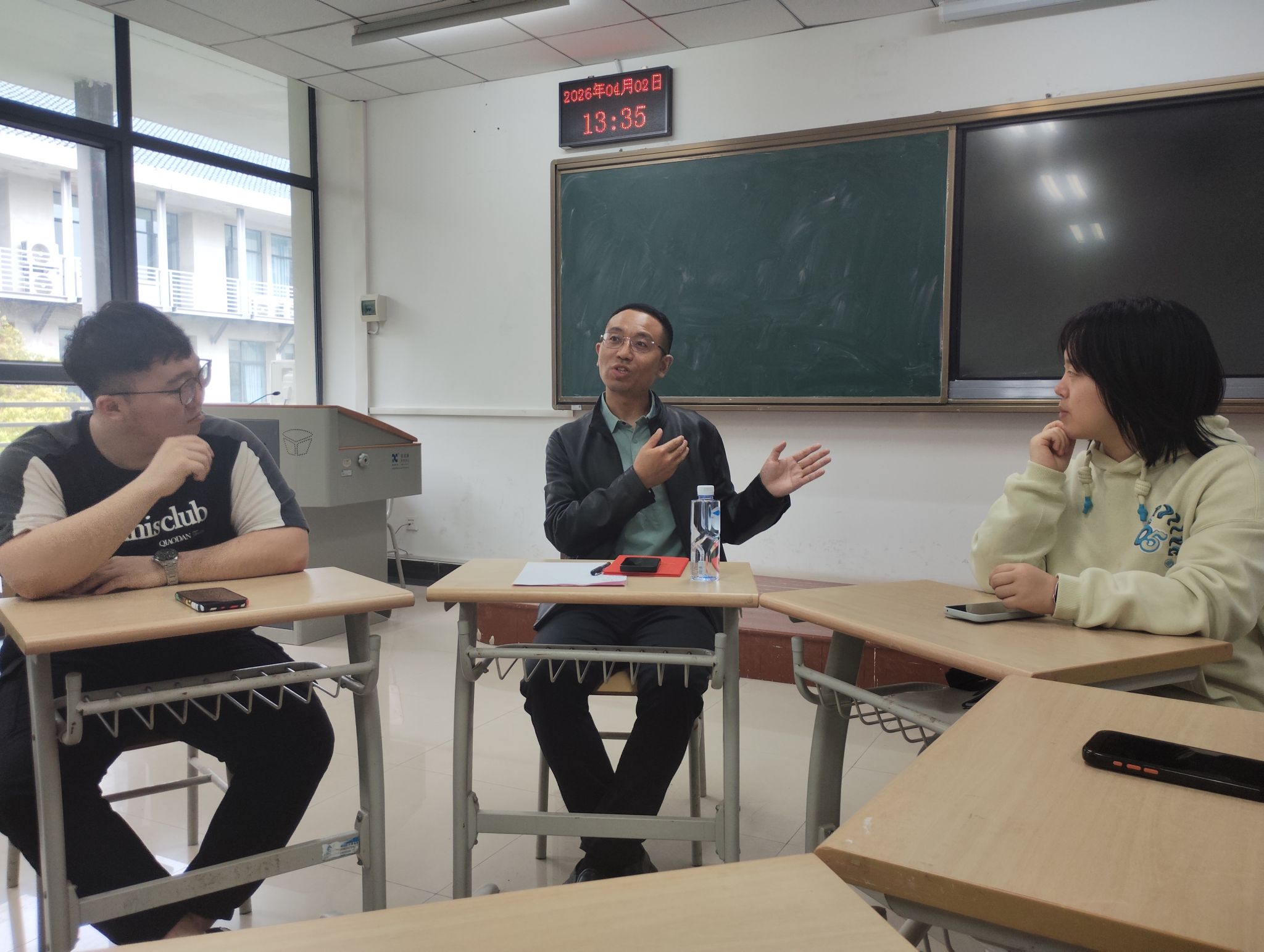 会后,2024级卓越教师班校外导师和全体学生在国交三号楼C501-506教室开展分组讨论,师生围绕教学理念、职业规划、课题研究等话题展开深入交流,现场气氛热烈。导师们结合一线经验耐心答疑,同学们纷纷表示受益匪浅,对未来的学习与实践方向更加明晰。