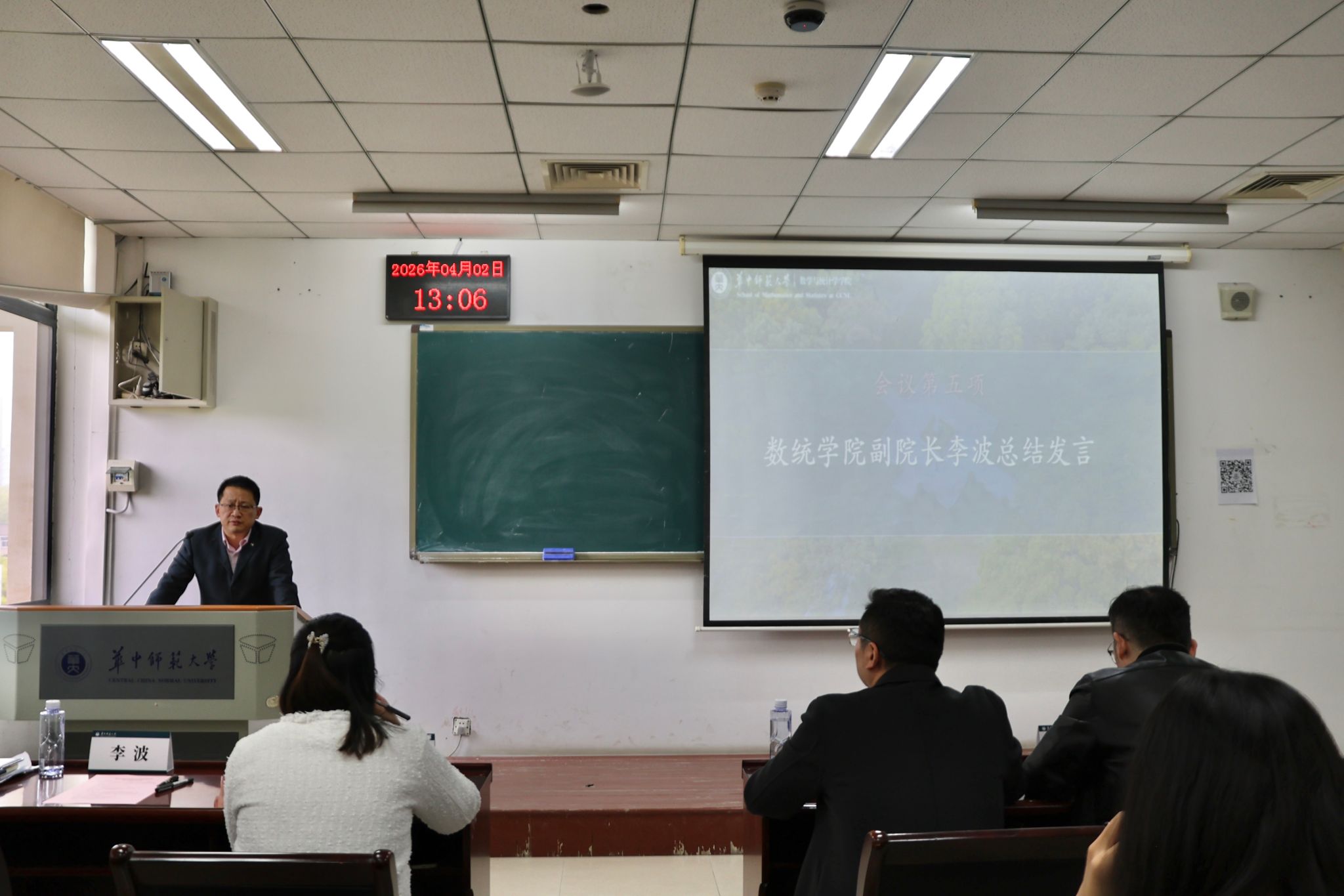 李波在总结发言中向各位校外导师表示诚挚感谢。他简要回顾了往届卓越教师班取得的优异成绩,并结合当前基础教育发展趋势指出,希望同学们主动对接中学教育实际需求,充分依托学校在教师教育与数字化领域的特色资源,主动拥抱新技术、新方法,持续提升专业底蕴与实践本领。李波强调,学院与导师团队将全力护航大家成长,希望大家倍加珍惜机遇、虚心求教,在教书育人之路上行稳致远。